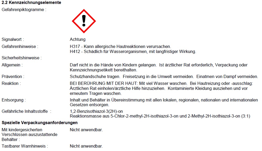 Warnhinweise gemäß CLP Verordnung